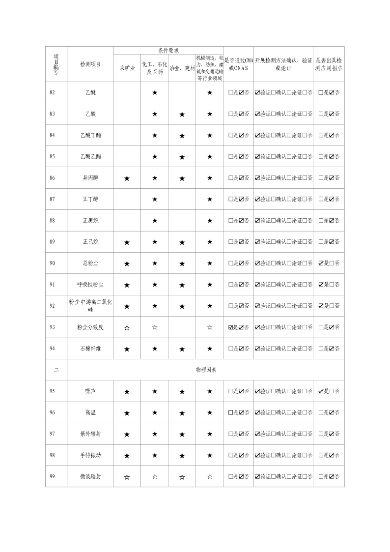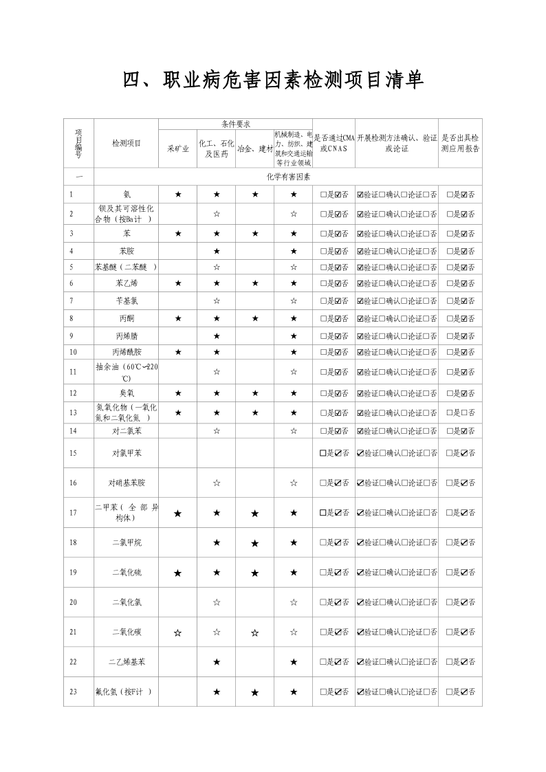 2024年職業(yè)衛(wèi)生技術(shù)服務(wù)機(jī)構(gòu)資質(zhì)證書及職業(yè)病危害因素檢測項(xiàng)目清單