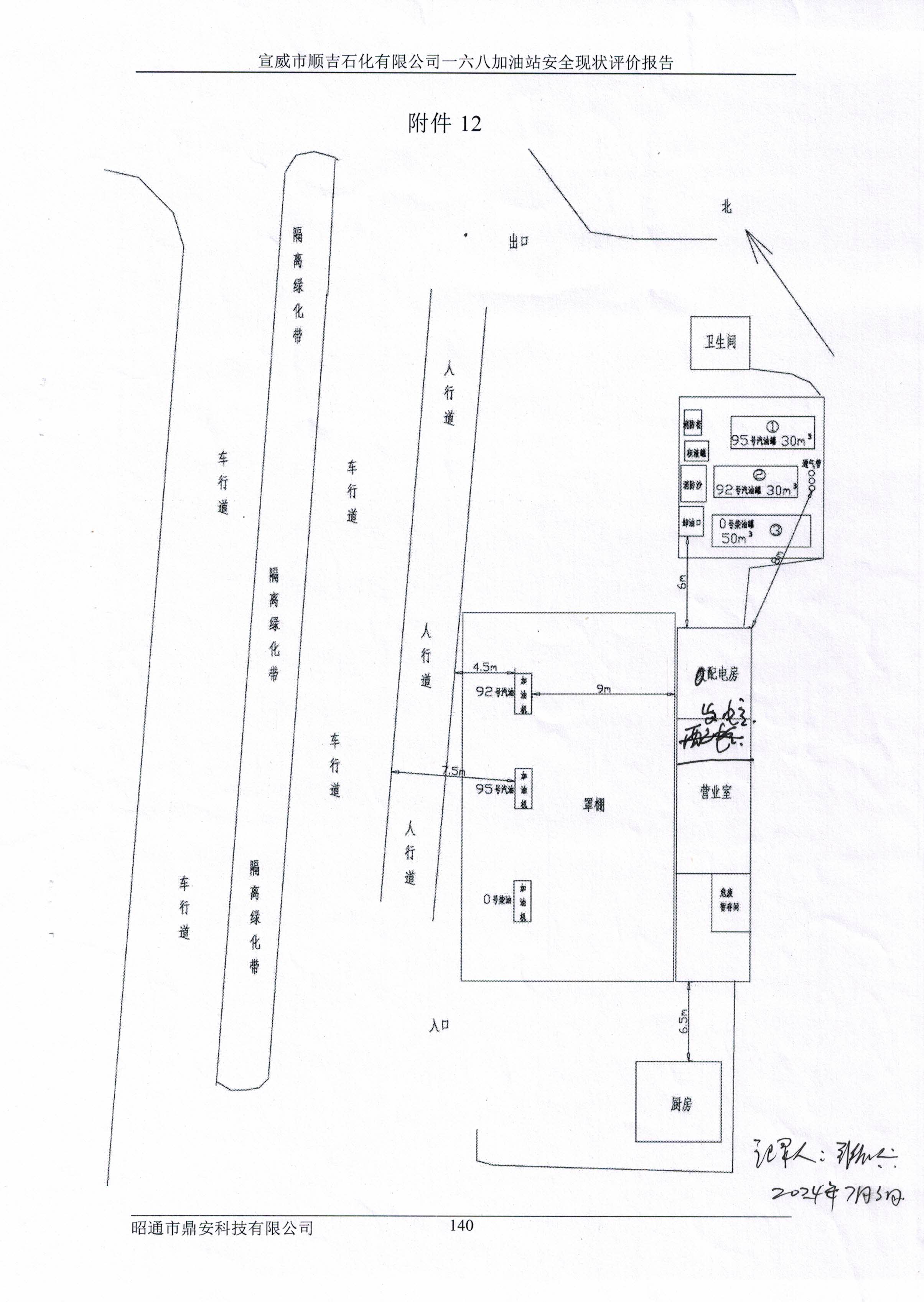 評價結(jié)論為:宣威市順吉石化有限公司一六八加油站已完成本次評價發(fā)現(xiàn)的不符合項整改,站址選擇及平面布置、加油工藝及設(shè)施、消防設(shè)施、電氣及報警系統(tǒng)、建(構(gòu))筑物等方面符合《汽車加油加氣加氫站技術(shù)標(biāo)準(zhǔn)》(GB50156-2021)標(biāo)準(zhǔn)規(guī)定;經(jīng)營場所、危險化學(xué)品儲存設(shè)施、人員配置及培訓(xùn)考核、安全管理制度、安全操作規(guī)程、應(yīng)急預(yù)案、應(yīng)急物資滿足《危險化學(xué)品安全管理條例》(國務(wù)院令第591號,第645號修改)第三十四條、《危險化學(xué)品經(jīng)營許可證管理辦法》(原國家安監(jiān)總局令第55號公布,第79令號修正)第六條要求,從安全的角度宣威市順吉石化有限公司一六八加油站具備危險化學(xué)品經(jīng)營的安全條件。 | ||||||||