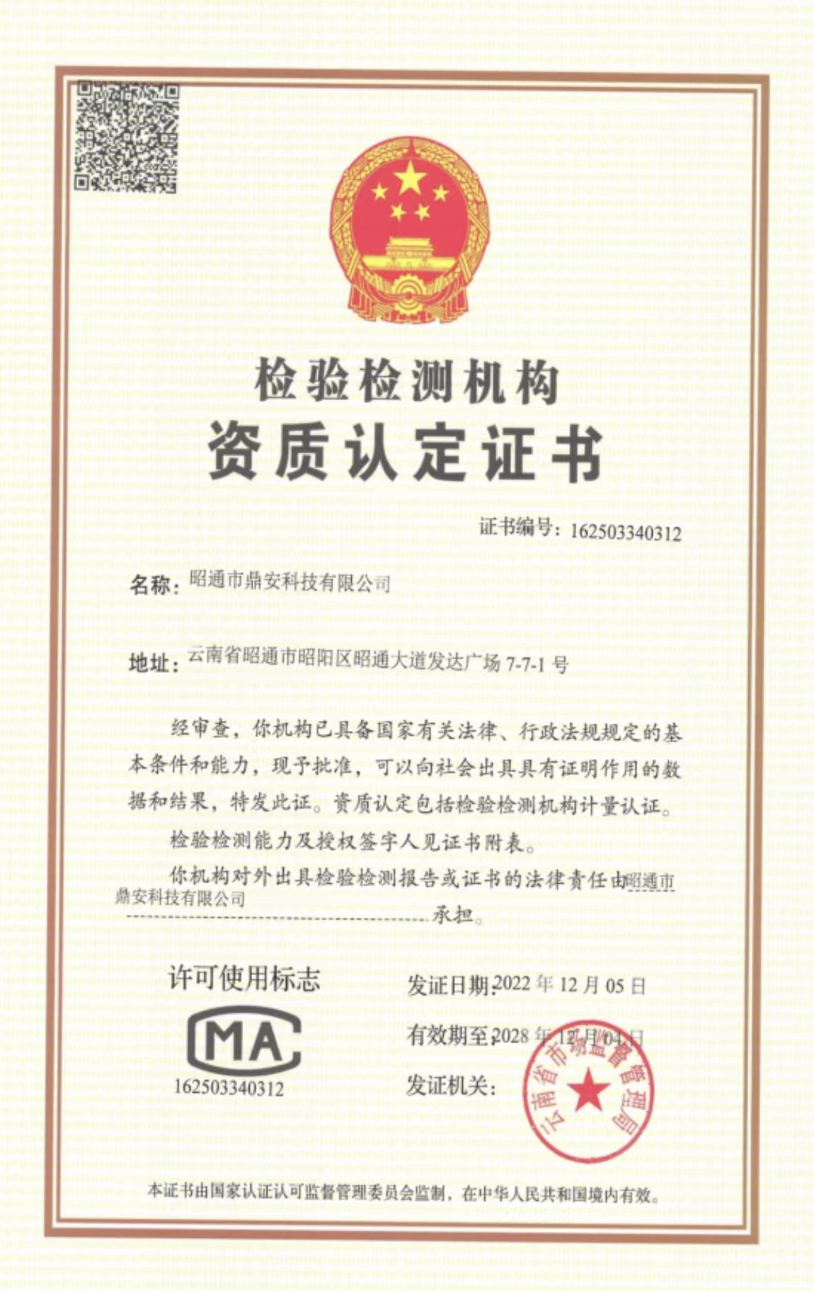 檢驗檢測機構資質認定證書