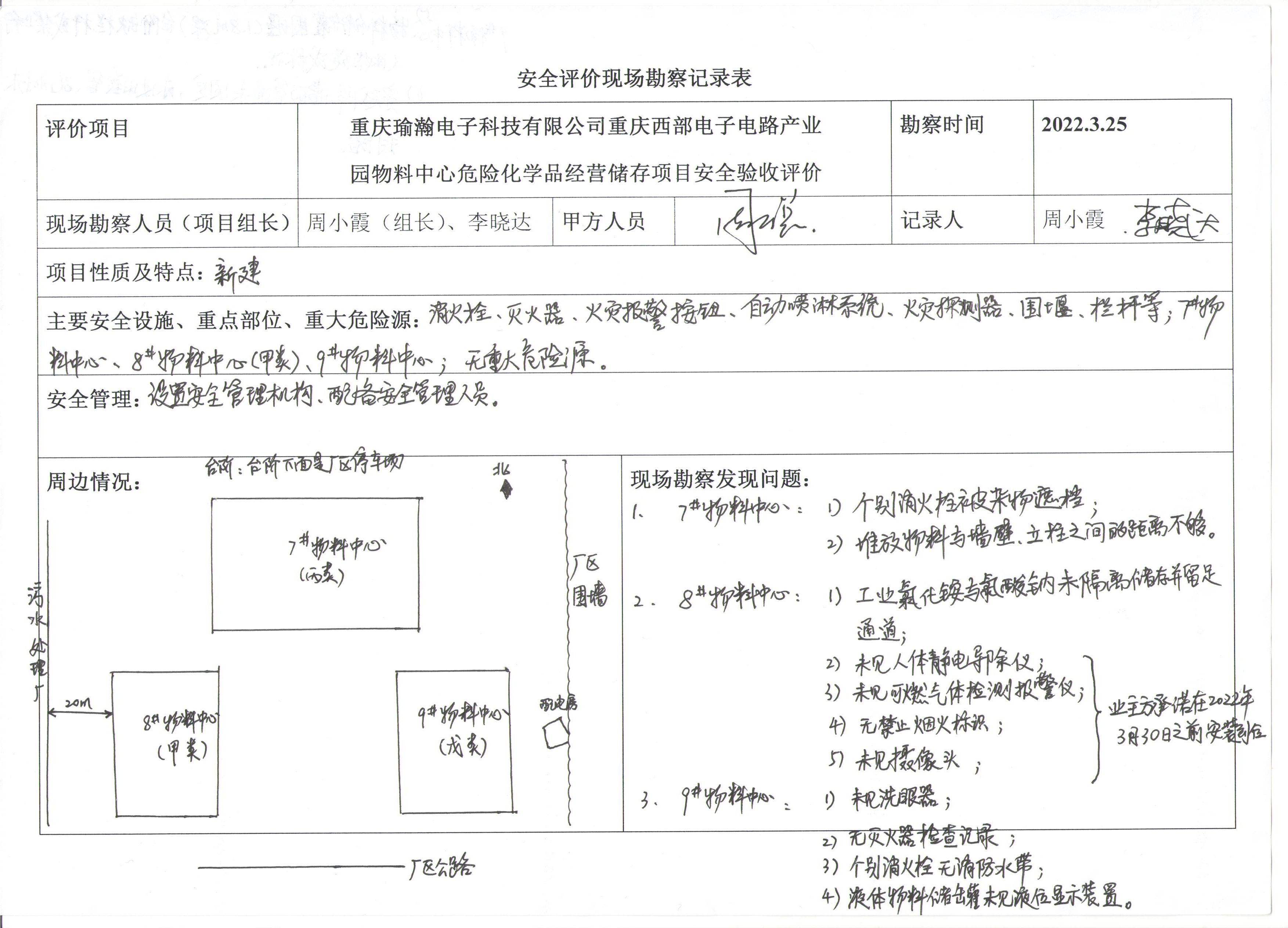 項(xiàng)目名稱 | 重慶瑜瀚電子科技有限公司物料中心危險化學(xué)品經(jīng)營儲存項(xiàng)目 安全驗(yàn)收評價 | 合同編號 | DA-(渝)JP-2022001 | |||||