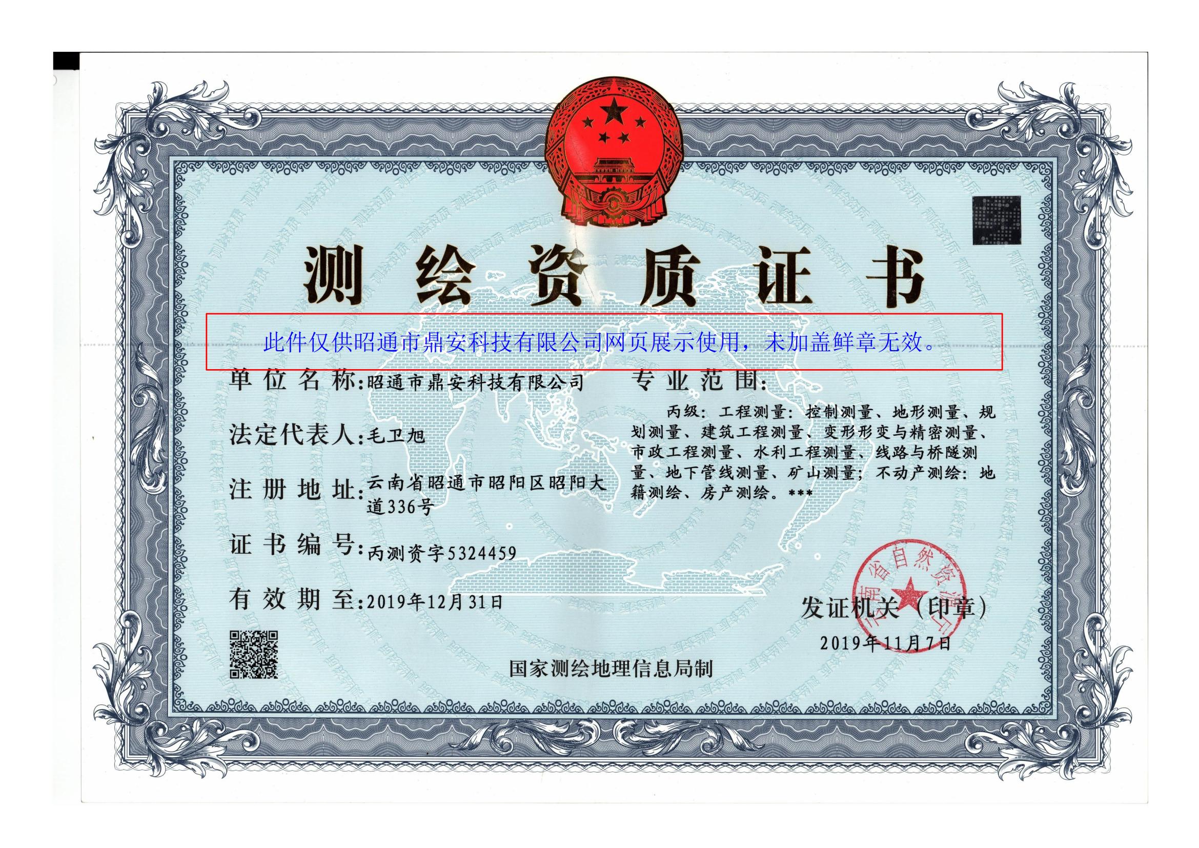 昭通市鼎安科技有限公司測(cè)繪資質(zhì)